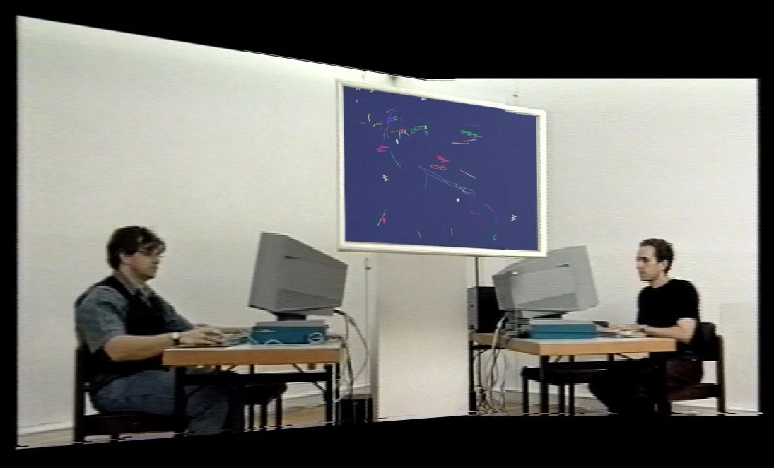 Motion Phone was Snibbe’s first exhibited work of interactive art that grew out of his study and passion of the abstract and experimental film of Oskar Fischinger, Len Lye, and Lotte Reininger. With Motion Phone, Snibbe creates a “visual instrument” for performing abstract animation like jazz, rather than composing it frame-by-frame. The piece is a one-second loop on an infinite digital canvas that people in remote locations can add more and more animated marks too, creating a shared composition and communicating with pure abstraction.